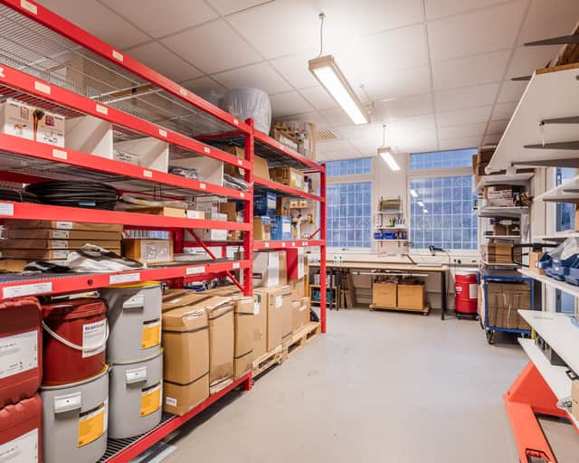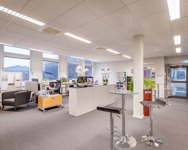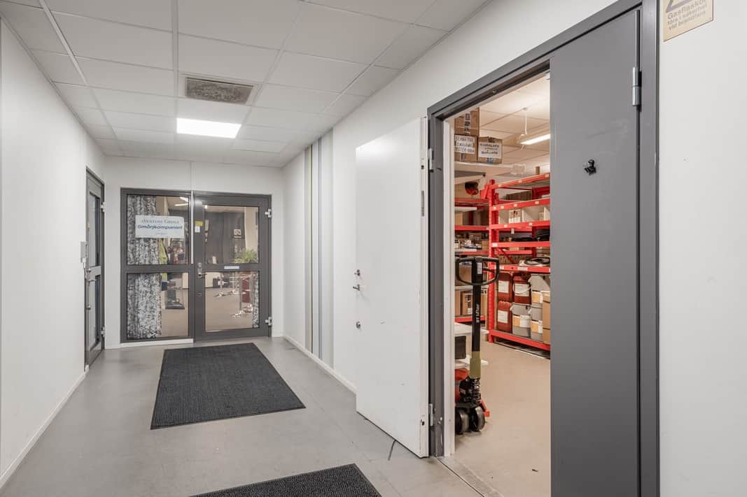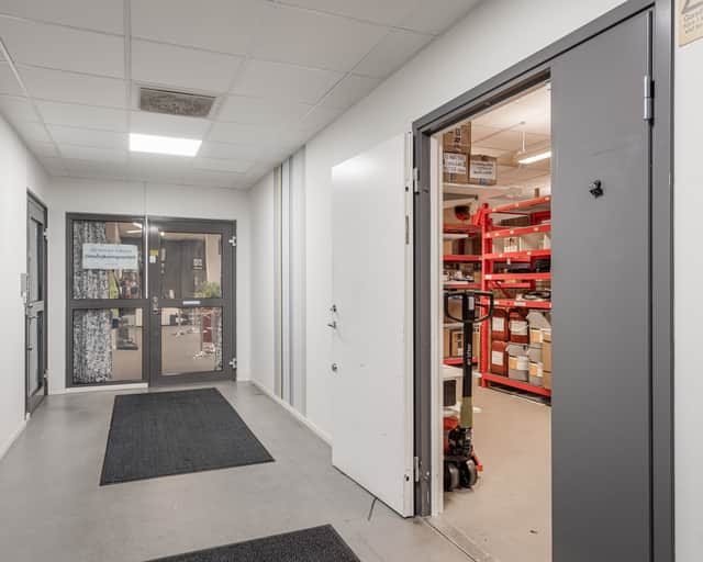 Öppen planlösning och kontorsrum samt mötesrum och lagerdel. Lyftbord finns för in- och utlastning samt gemensam lastbrygga.