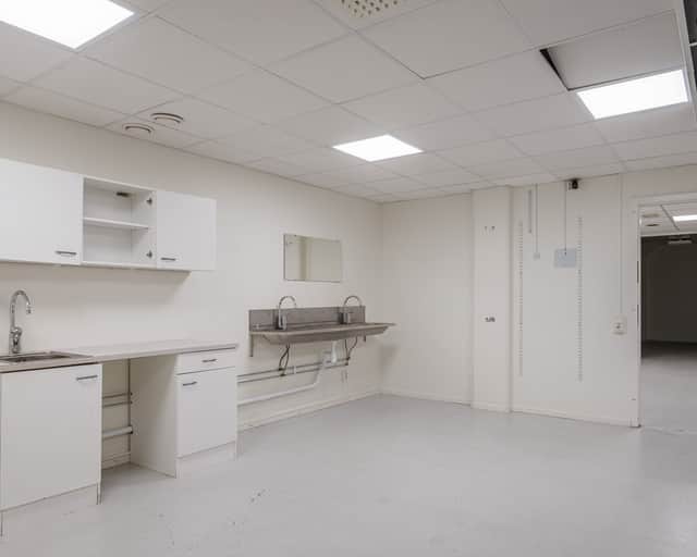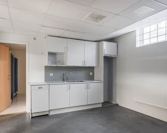 Lagerdel, kontor samt personautrymme. Enkel lastning via port.