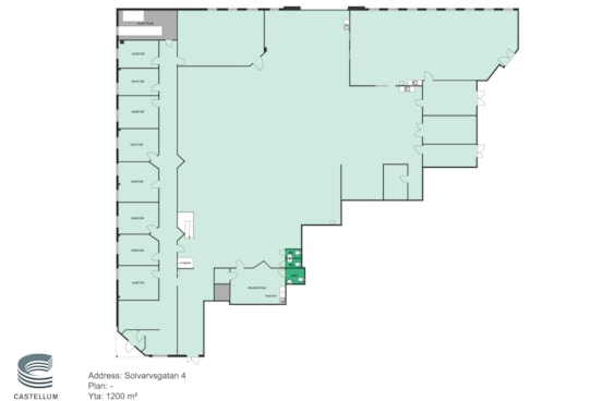Stort kontor med möjlighet att dela till två mindre kontor. Ljusinsläpp från tre väderstreck och många fönster ger en ljus lokal. Man har möjlighet att vara med och utforma planlösning. Vid anpassningar försöker vi alltid ha återbruk och hållbarhet i åtanke.