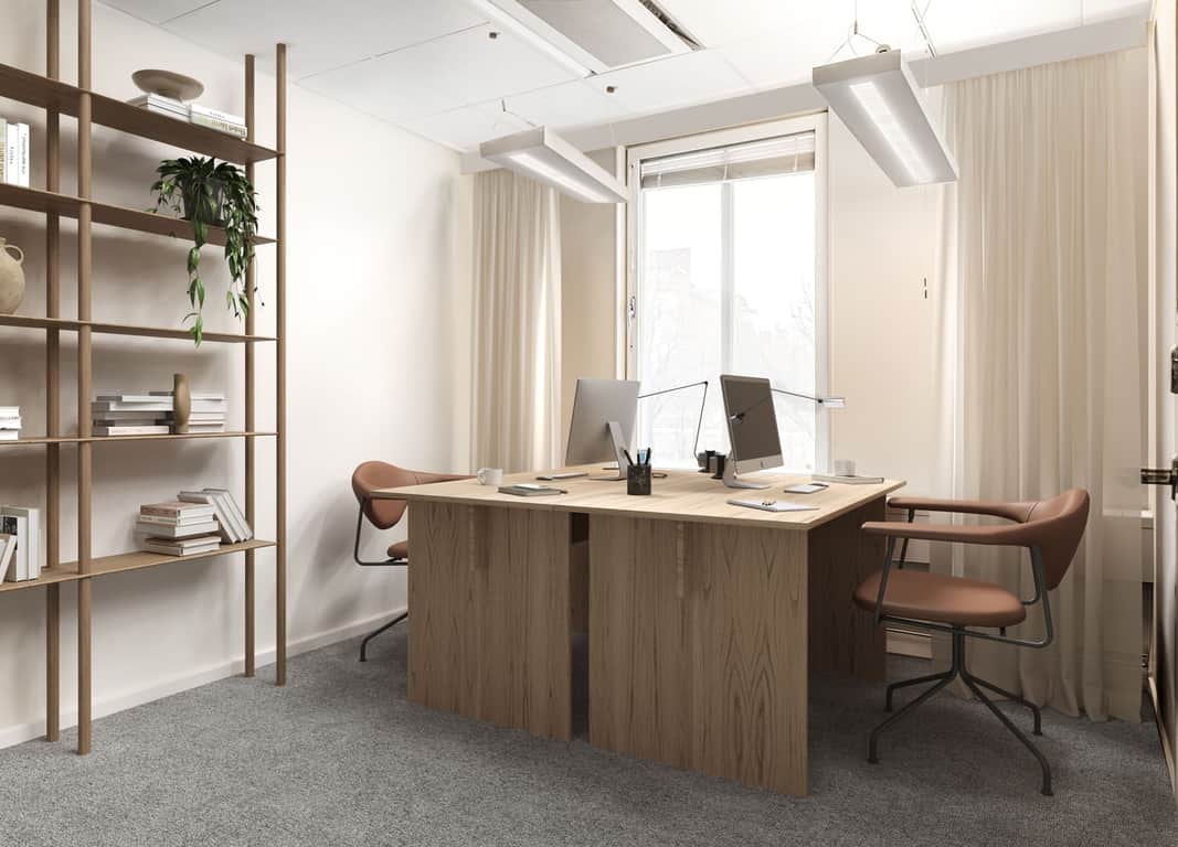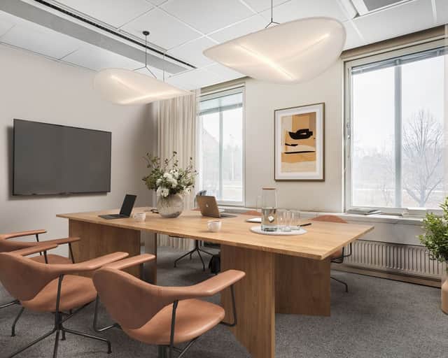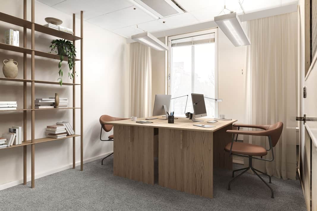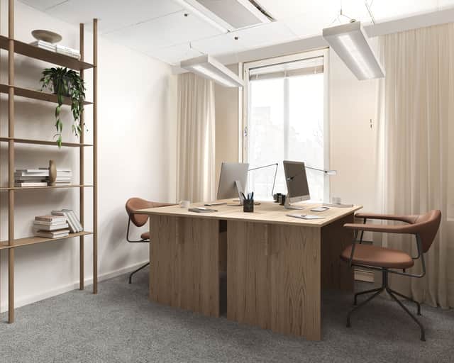Lokalen består av flertal fina och ljusa arbetsrum, mötesrum och en lageryta. Förstabilden i annonsen är E-stylad (digitalt möblerad).