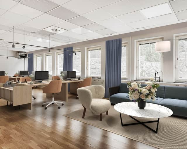 Välkommen till detta modernt kontor med en välkomnande entré och ytteffektiv planlösning!