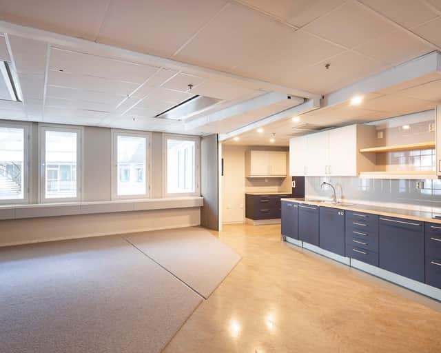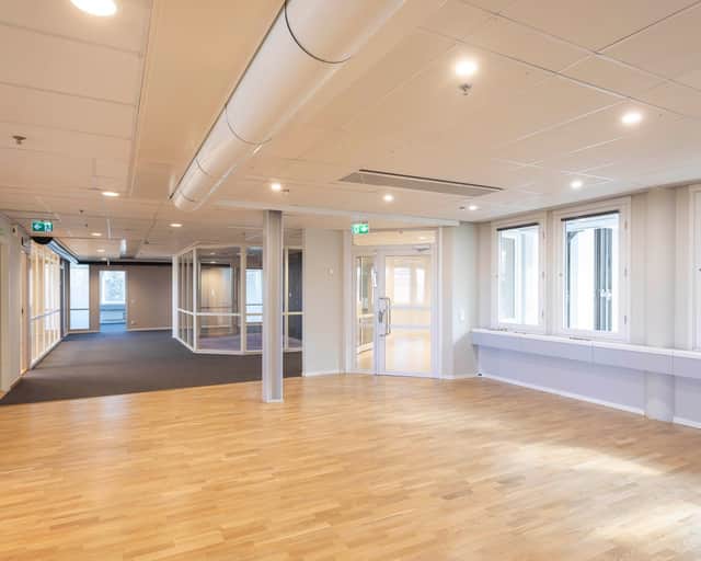 Lokalen erbjuder en unik arbetsmiljö för företag som vill ge sina medarbetare och besökare en inspirerande plats att vistas på. Planlösning och ytor - Lokalen är smart utformad för att stödja olika arbetsstilar och behov: - Stora öppna kontorsytor för samarbete och kreativt arbete - Flera mötes- och konferensrum i olika storlekar för allt från snabba avstämningar till större presentationer - Generösa paus- och loungeytor som skapar en trivsam social miljö - Pentry och matplats i anslutning till umgängesytor - Flera mindre samtalsrum för enskilda möten eller ostört arbete - Privat terrass med fantastisk utsikt – perfekt för personalmöten, kundevent eller en paus i solen