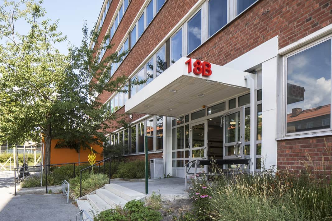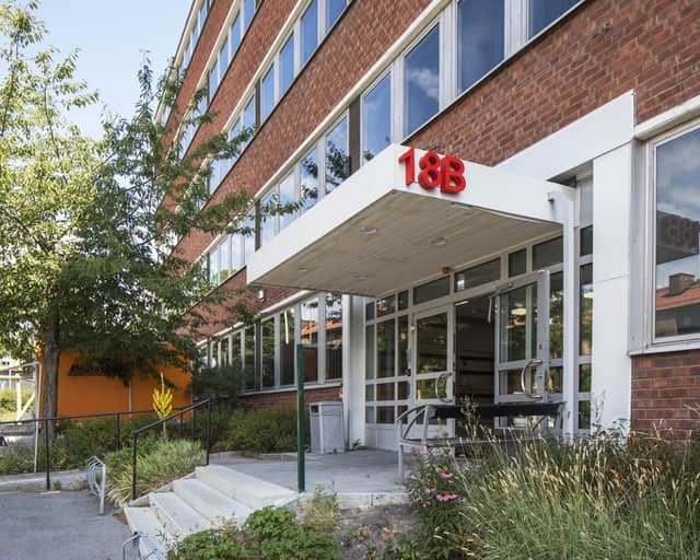 Fastigheten består av en kontor- och lättproduktionsbyggnad med lagerytor och lastkaj i bottenplan. Från kontoren på planen ovan kan du blicka ut över området som är i stor utveckling i och med att Stockholm växer.