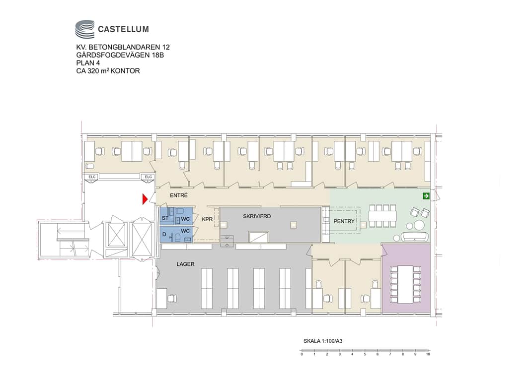 Välkommen till denna lokal som har en öppen planlösning vilket skapar en luftig atmosfär och där medarbetarna lätt kan interagera med varandra.