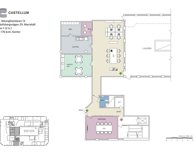 Modern och flexibel kontorslokal om ca 176 kvm med genomtänkt planlösning i populära Mariehäll. Lokalen erbjuder en ljus och trivsam arbetsmiljö med stora fönster mot en härlig ljusgård. Här finns öppna arbetsytor kombinerat med mötes- och samtalsrum, rymligt konferensrum samt pentry och matplats för sociala pauser. Lokalen är belägen på plan 1 (2 trappor upp) och ger en professionell men samtidigt välkomnande känsla direkt vid entrén.