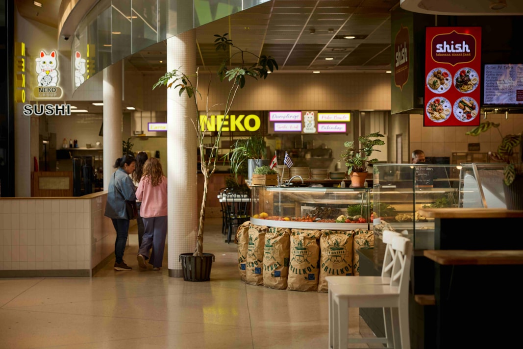 I området finns både café och restaurang. På café Lilla Hörnan beläget vid Gårdsfogdevägen 3A kan du avnjuta både morgonkaffe med macka samt lunch. På Restaurang Mariehäll beläget runt hörnet på Karlsbodavägen 17C kan du äta högklassig lunch mån-fre. På andra sidan vägen finner ni Bromma Blocks med all tänkbar service - sportbutiker, heminredning, restauranger och gym.
