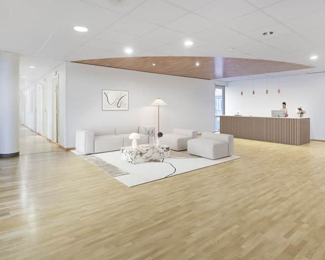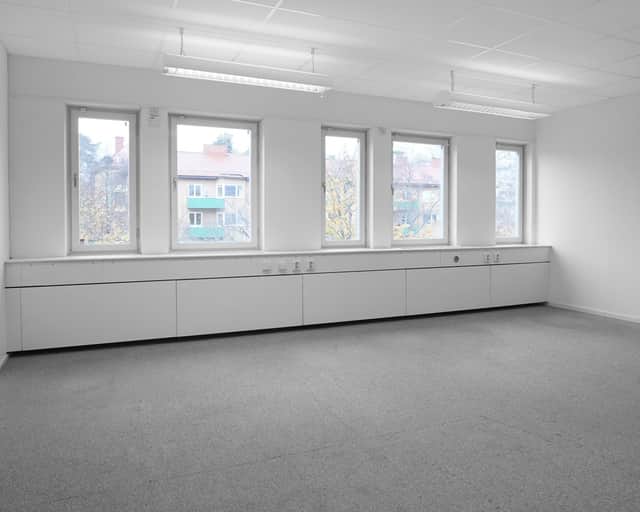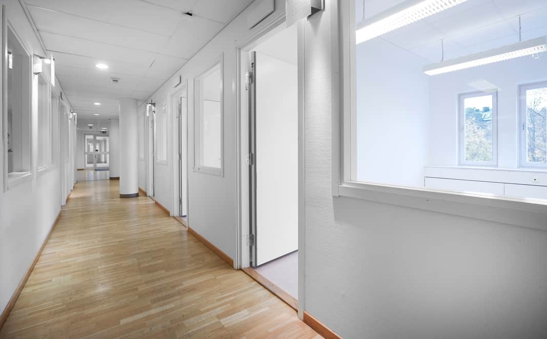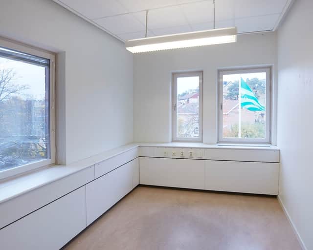 Lokalen har många fönster vilket ger ett härligt ljusinsläpp och skapar en trevlig arbetsmiljö för kollegorna.