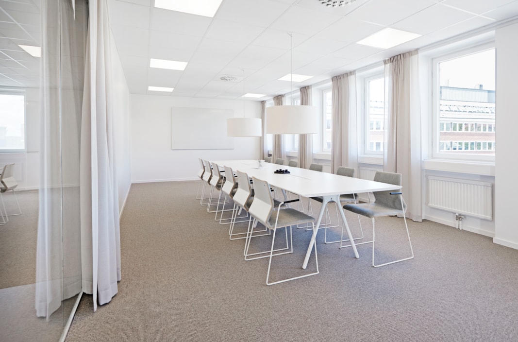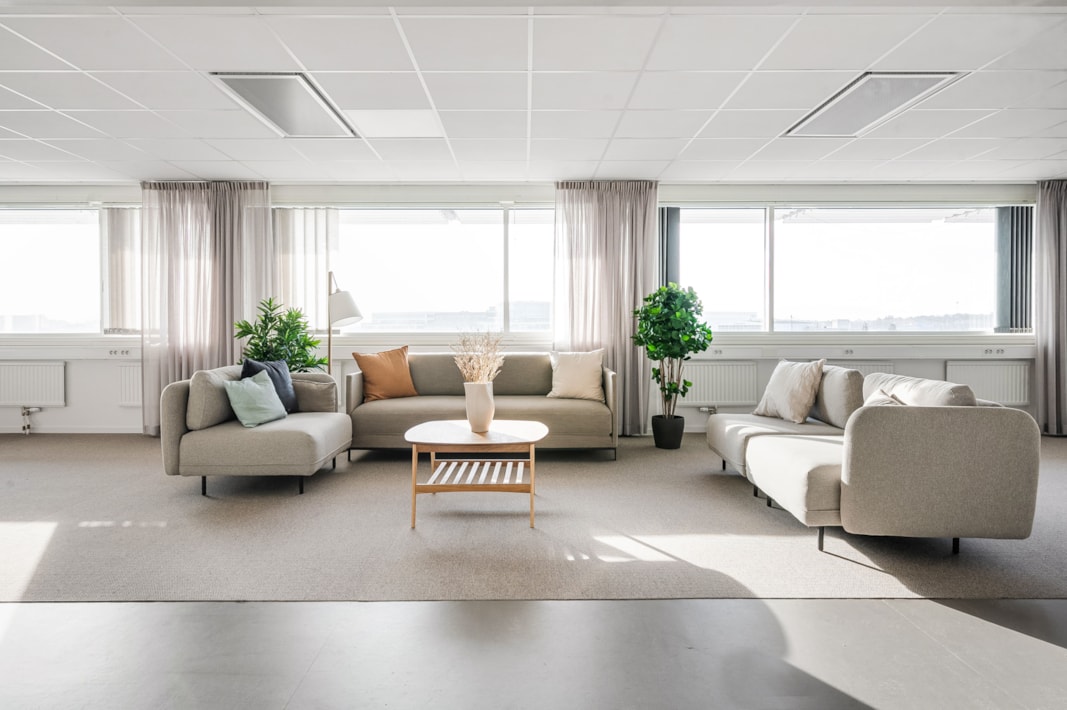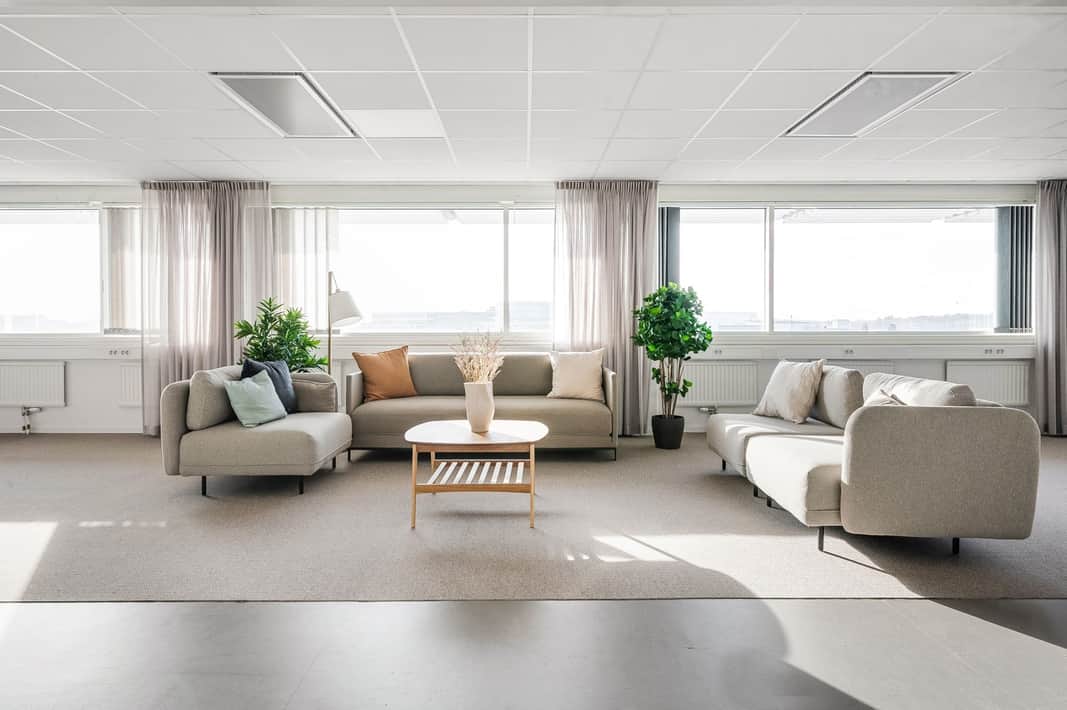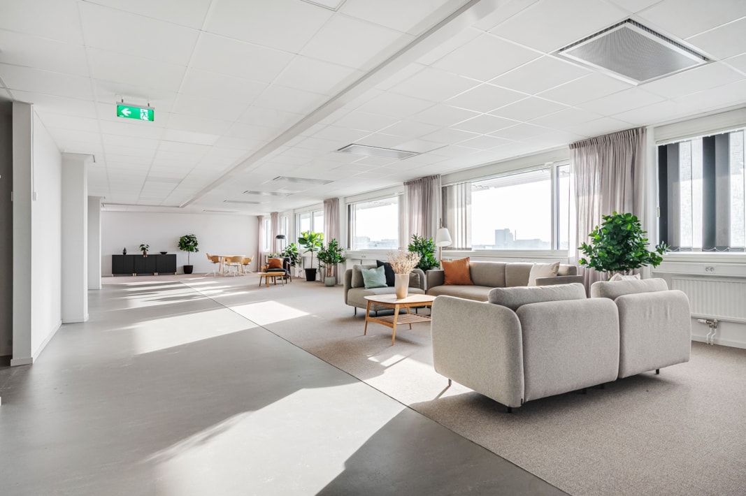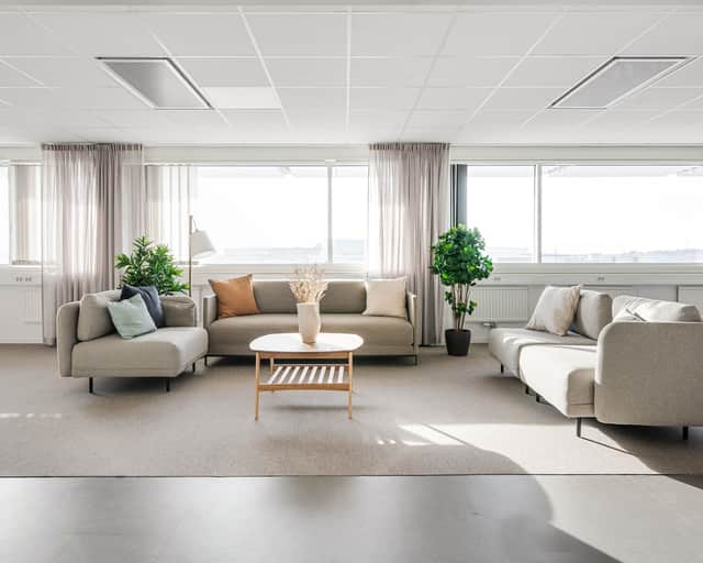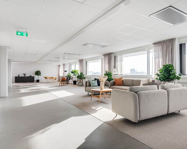 Kontoren har fönster i alla väderstreck och ger ett härligt ljusinsläpp, vilket skapar en trevlig arbetsmiljö.