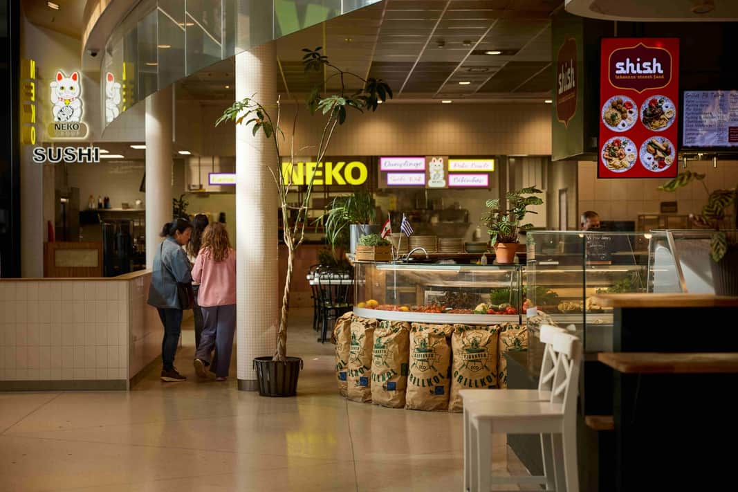 I området finns både café och restaurang. På café Lilla Hörnan beläget vid Gårdsfogdevägen 3A kan du avnjuta både morgonkaffe med macka samt lunch. På Restaurang Mariehäll beläget runt hörnet på Karlsbodavägen 17C kan du äta högklassig lunch mån-fre. På andra sidan vägen finner ni Bromma Blocks med all tänkbar service - sportbutiker, heminredning, restauranger och gym.