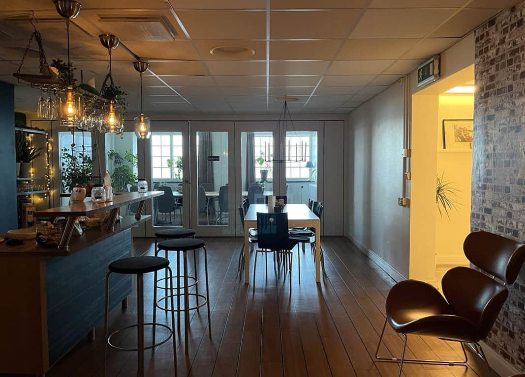 Öppet kök i en generös yta, perfekt för både formella och informella möten. Konferensrummet erbjuder en fantastisk utsikt över Vättern, vilket ger en inspirerande miljö för kreativa diskussioner och viktiga beslut. De stora rummen är mångsidiga och kan användas som samtalsrum eller kontor, med gott om utrymme för att anpassa efter dina behov och visioner. . Vid entrén möts du av en reception.