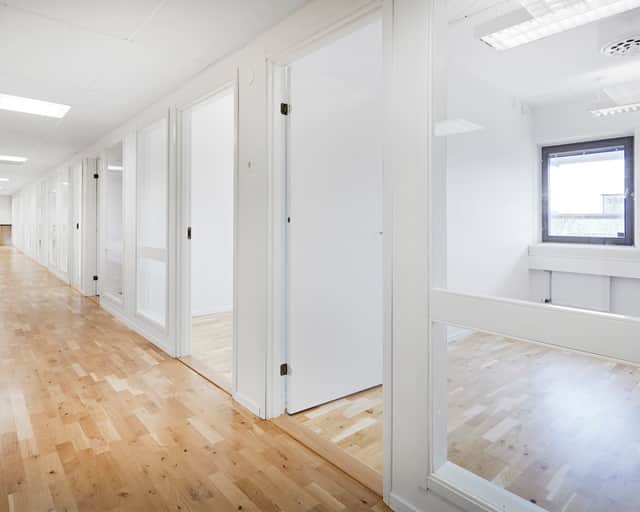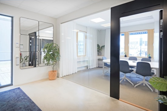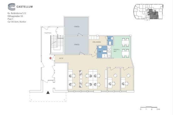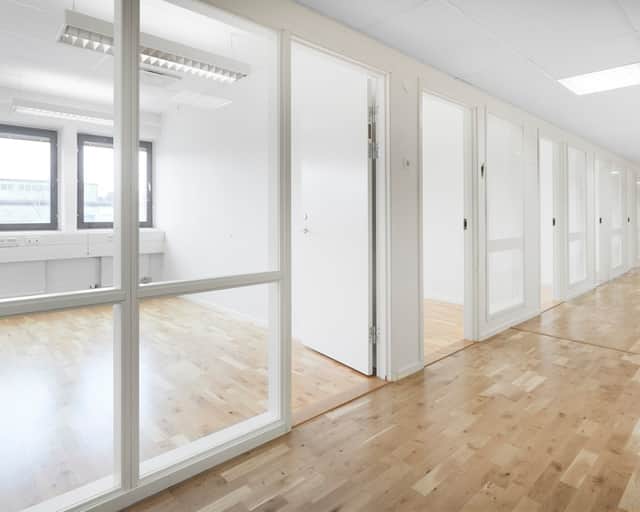 Lokalen är belägen på plan 2 med ekparkett som löper igenom hela lokalen. Den är utformad så att det finnns 8 stycken kontor alternativt mötesrum samt ett mindre utrymme för lager och förvaring och ett större konferansrum. Ytan är flexibel och kan anpassas efter era specifika behov, vilket gör den utmärkt för diverse olika verksamheter.