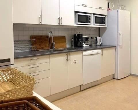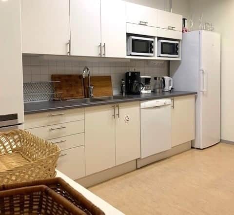 Kyld tilluft med solavskärmning. Mötesrummet har ingen teknisk utrustning. Flertalet rum har eget handfat.