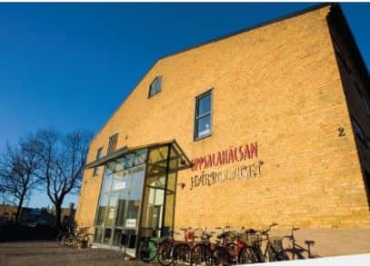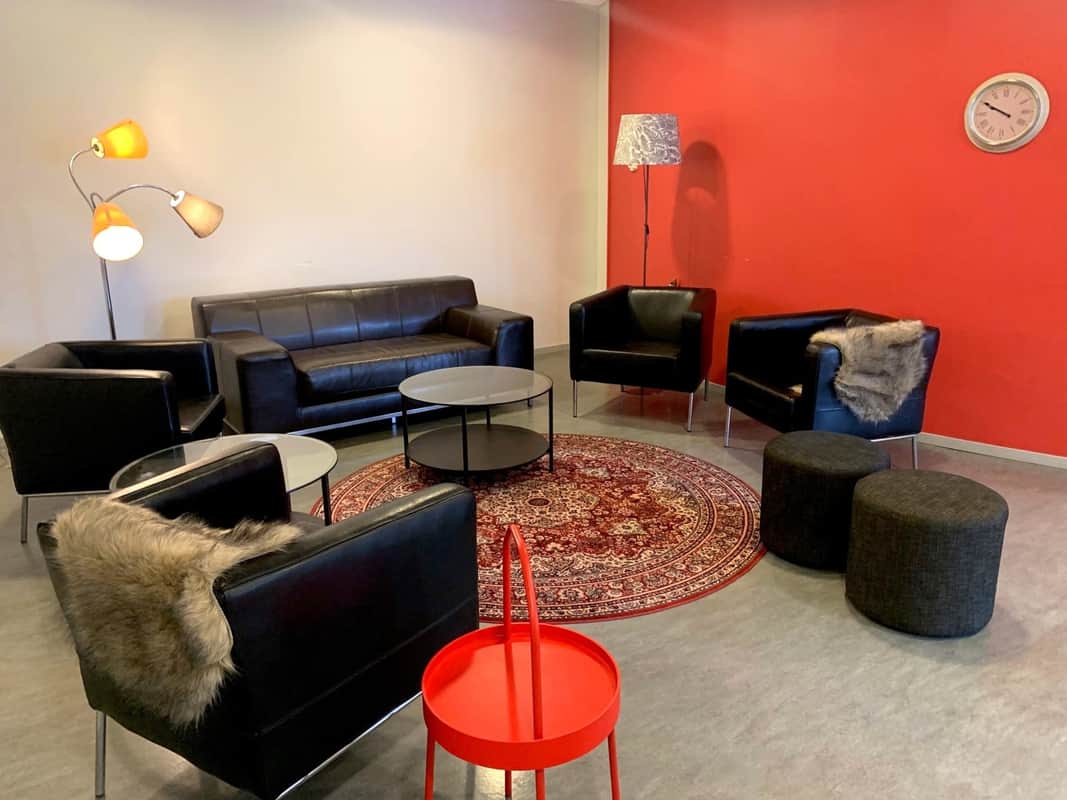Möbler och inredning är återbrukat från Castellum, Skanska, Röda Korset, Erikshjälpen och Återbruket. Rummen hyrs ut i befintligt skick med stor frihet i hur du vill måla om och dekorera.