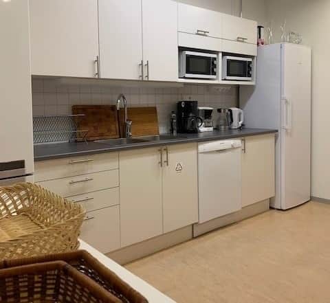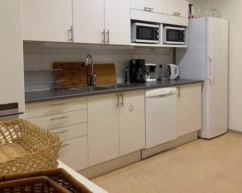 Wi-fi, kyld tilluft med solavskärmning. Mötesrummet har ingen teknisk utrustning. Flertalet rum har eget handfat.