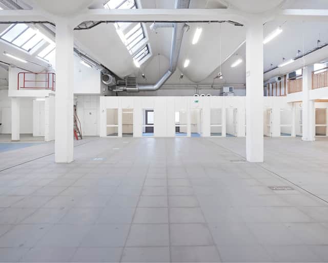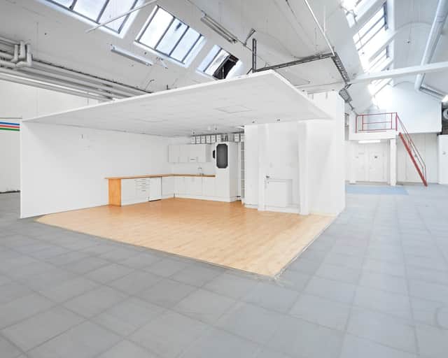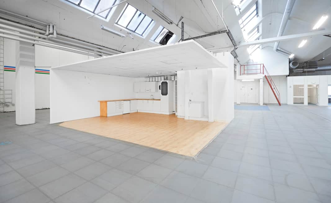 Lokalen passar bra för utställning/ showroom, fotostudie, eller som byggetablering. Lagret har en bra takhöjd och planlösningen består av stora öppna ytor och en mindre kontorsdel.