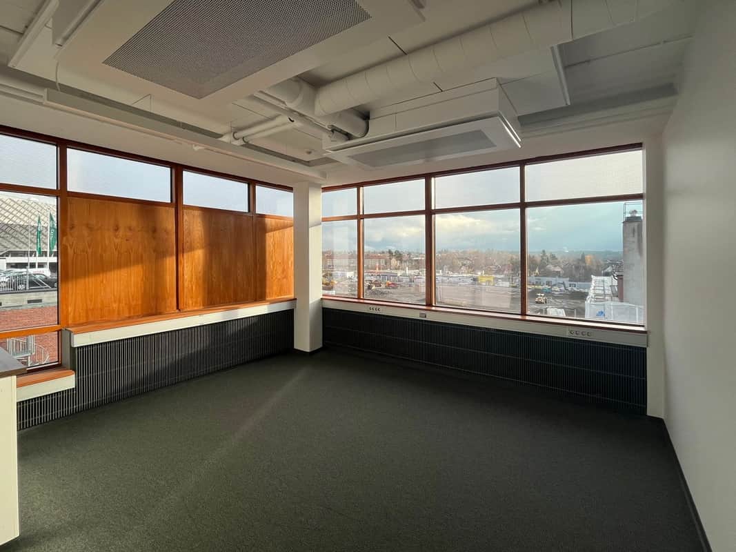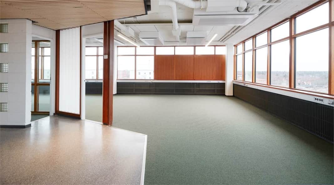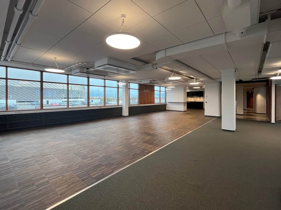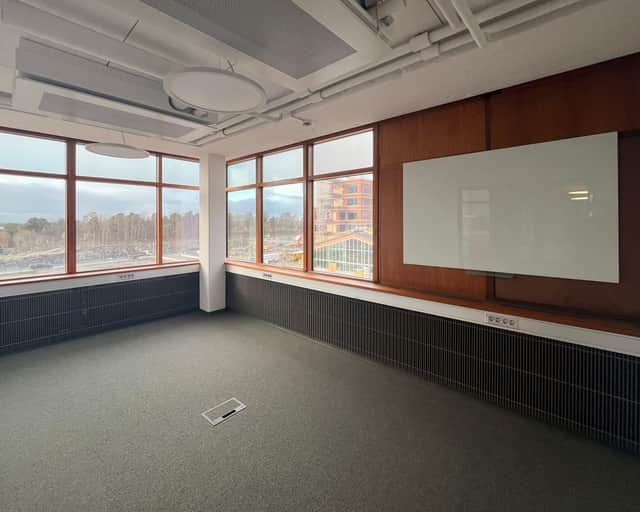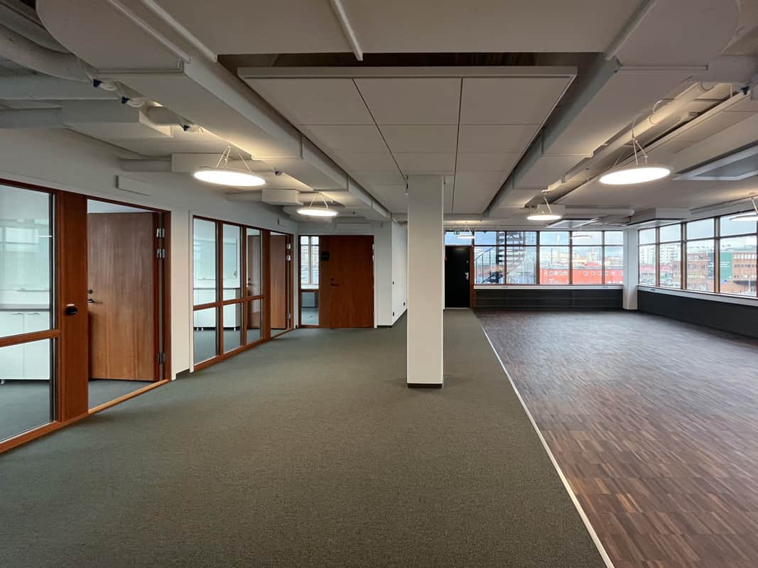 Planlösningen består av en blandning av kontor, konferensrum och öppet landskap. Med fönster i alla väderstreck får man ett bra ljusinsläpp som skapar en trevlig arbetsmiljö och tillsammans med den generösa takhöjden får lokalen en härlig rymd.