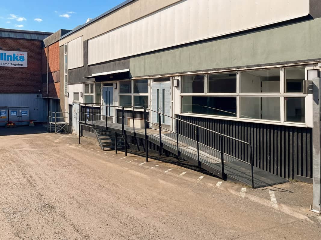 Lokalen har access via ett höj- och sänkbart lyftbord, lämpat för exempelvis EU-pall. Lagret har öppen planlösning samt mindre omklädningsrum med dusch.