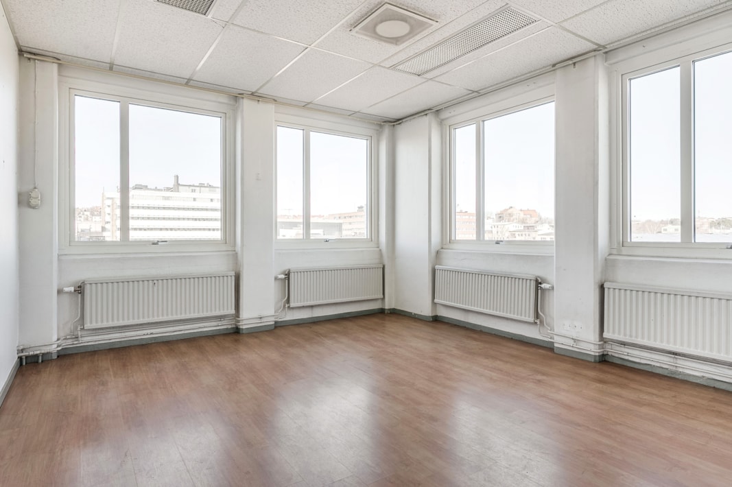Kontorsdelen i lokalen är verkligen något speciellt. Här kan du uppleva en perfekt balans mellan modern design och historiskt arv. De bevarade partier av betongglasväggar ger en industriell touch samtidigt som den fina träpanelen och tegelväggarna skapar en varm och inbjudande atmosfär.