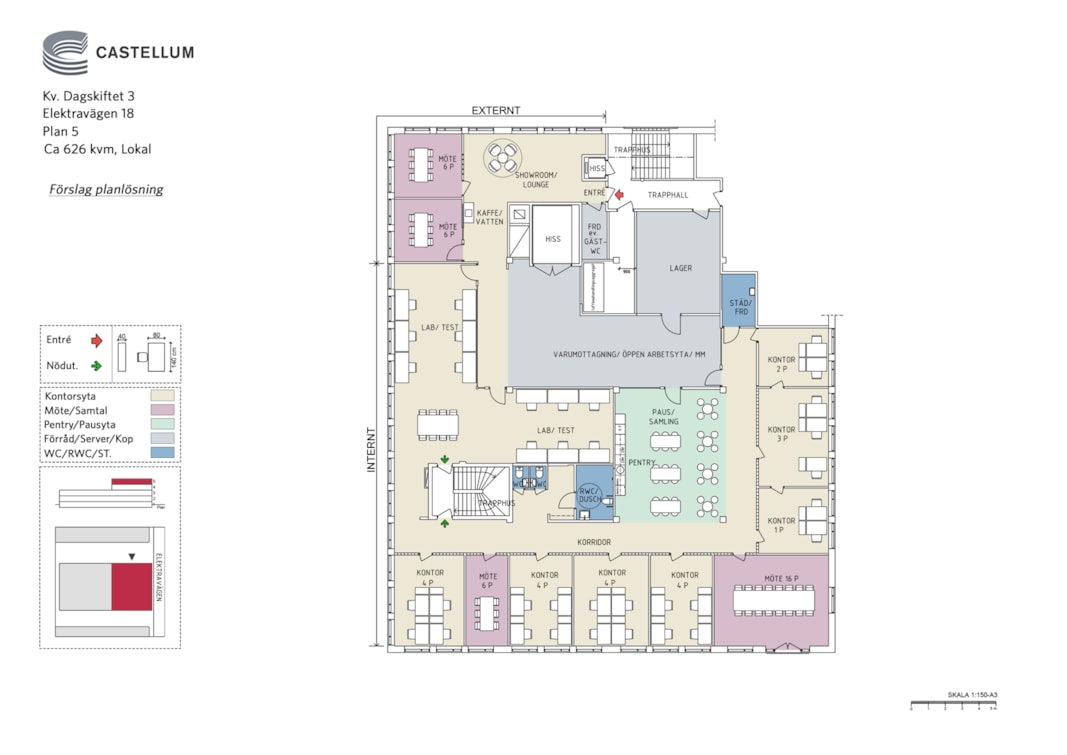 När det gäller lagerdelen har den en bärighet på 500 kg/ kvm och direktaccess med en lasthiss som tar 3 ton. Hissen går rakt in i lokalen för enkla och smidiga in- och utleveranser.