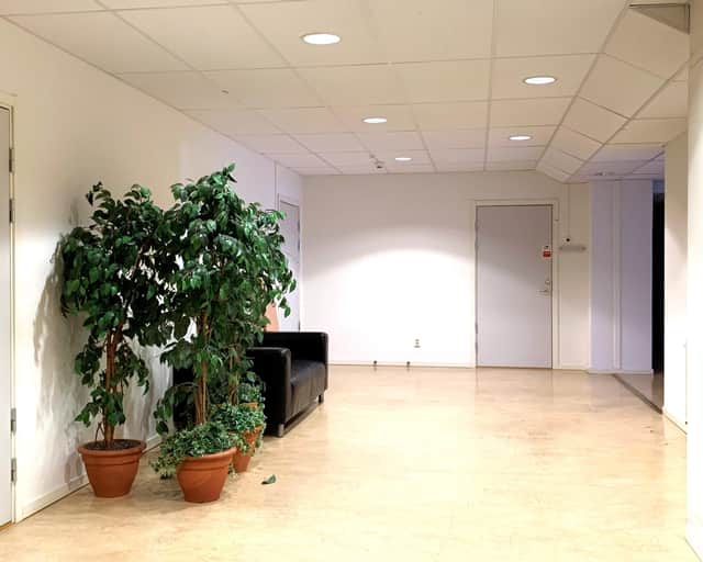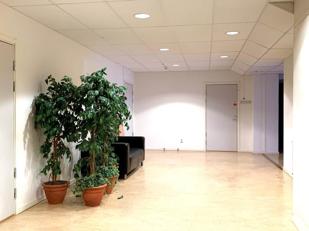 Här finns stora effektiva ytor med flertalet rum, både större salar, mötesrum och rum för kontor. Direkt in i lokalen finns en större hall med plats för umgänge och paus. Centralt i lokalen hittar ni även ett öppet pentry för fika och matraster. Flertalet toaletter varav en HWC. Separat dusch och omklädningsrum finns.