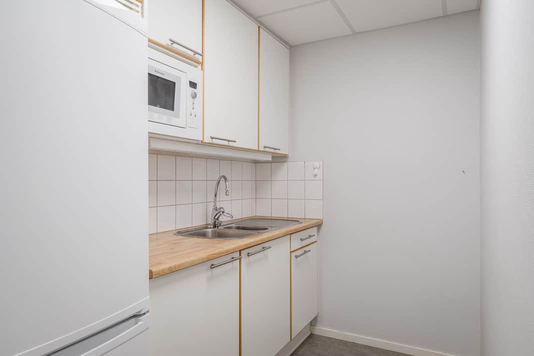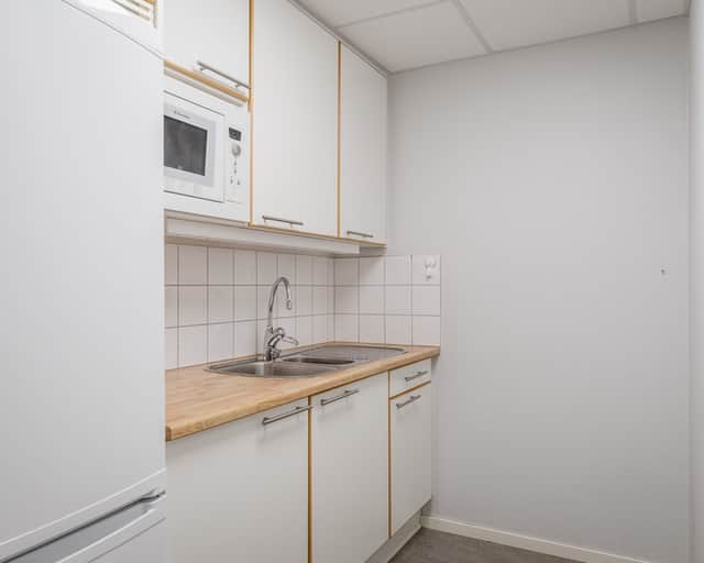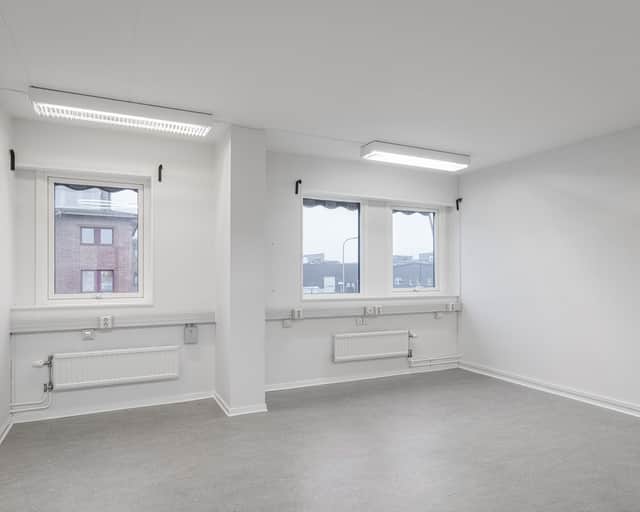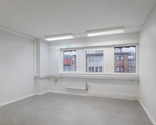 Kontoret är fördelat på 2 rum, 1 förråd och en mindre öppen yta med pentry, perfekt för det lilla företaget.