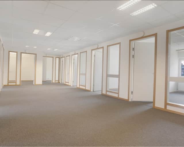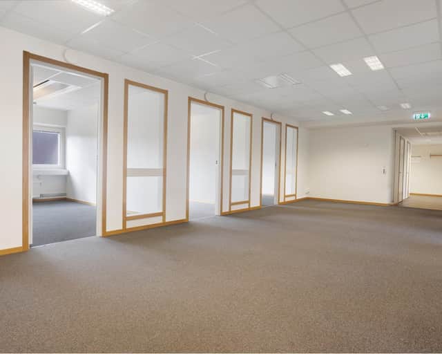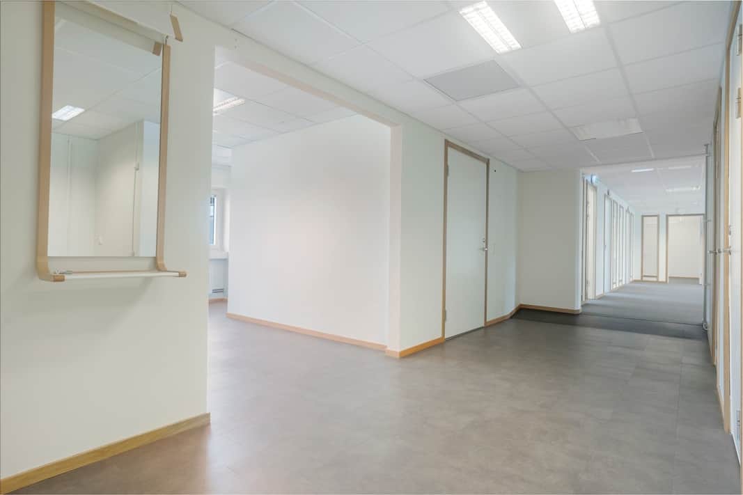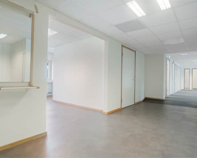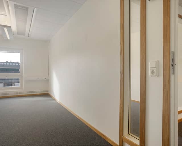 Kontoret är ett rent traditionellt kontor med egna småkontor för en eller två arbetsplatser. Om önskemål finns är det möjligt att öppna upp till ett större kontorslandskap. För möten finns ett större kontor. Till detta finns ett öppet fint pentry med diskmaskin, kyl/frys och micro. Lokalen har en helkaklad toalett som är en RWC. På skissförslaget är en wc med dusch inritad och möjlig att bygga till.
