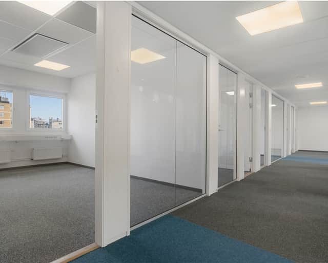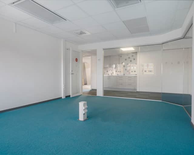 Lokalen har ett antal enskilda kontor och ett stort mötesrum. Viss yta i lokalen är oinredd och pentry och wc saknas vilket kommer installeras före inflyttning.