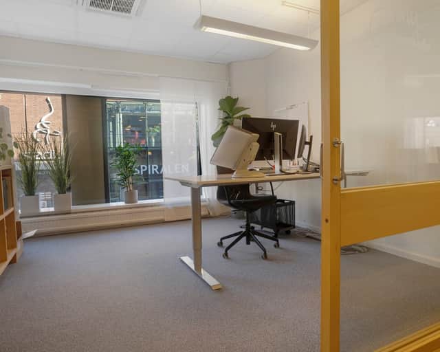 En ljus och luftig lokal med en genomgående behaglig atmosfär och fin utsikt. Den består av fyra rymliga kontorsrum som var och ett rymmer en eller två personer, samt ett större konferensrum. Dessutom finns en trevlig loungedel där man kan koppla av och njuta av utsikten över innerstaden.