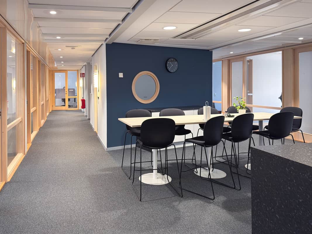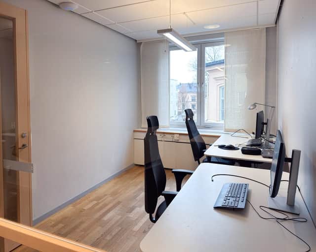 Kontoret sträcker sig över två plan (våning 2 och 3 ovan mark) och erbjuder många enskilda kontor samt mötesrum. En interntrappa förbinder våningsplanen och givetvis finns även hiss i trapphuset. I hjärtat av kontoret ligger ett trevligt lunchrum med pentry där man kan samlas för en gemensam lunch eller över en kopp kaffe. Observera att de tre sista bilderna är referensbilder inlagda från en liknande nyrenoverad lokal för inspiration. Välkomna att kontakta oss för mer information eller visning!