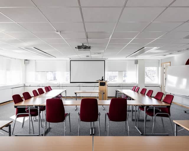 Möjlighet att hyra denna lediga kontorslokal högst upp i fastigheten som erbjuder en inspirerande arbetsmiljö! Denna lokal har ett större konferensrum som också kan användas som ett öppet kontorslandskap, vilket är perfekt för flera medarbetare att samarbeta. Dessutom finns två rymliga kontor/mötesrum, ett praktiskt pentry och tre toaletter, varav en är tillgänglighetsanpassad, vilket ger bekvämlighet för alla.