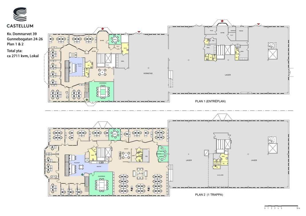 - Stora öppna ytor som möjliggör effektiv logistik och flexibel användning.