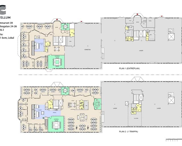 - Flera öppna kontorslandskap kombinerat med mötesrum och pausytor.