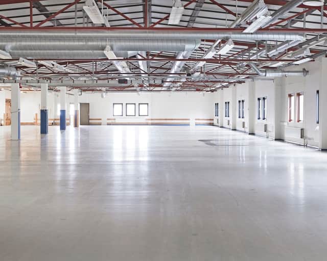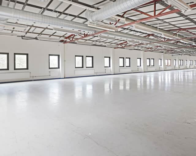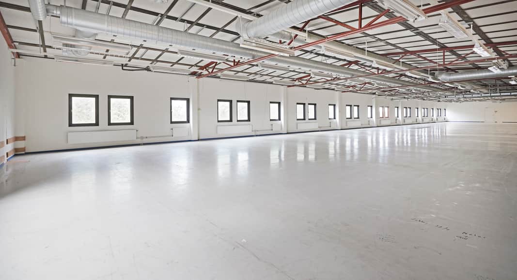Lokalen kan med fördel också användas som showroom. Takhöjden om 3,5 m och ljusinsläppet skapar en trevlig arbetsmiljö för medarbetarna.