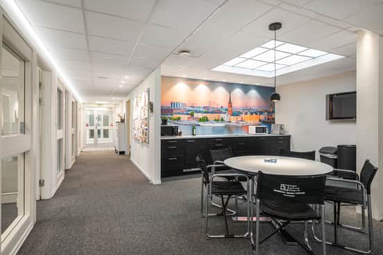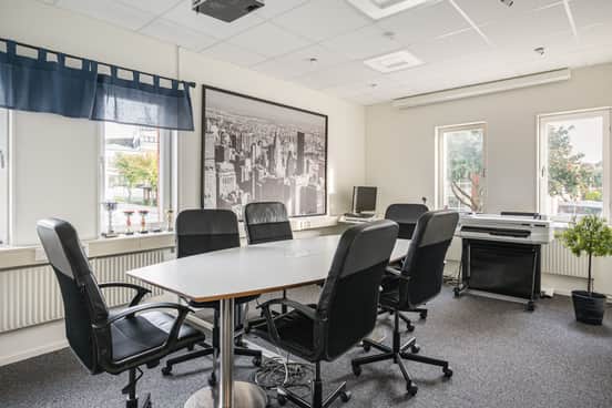 Planlösningen är öppen och kan anpassas efter era behov. Kontorsdelen med konferensrum och pentry har fina ytskikt.