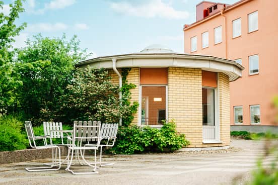 Fastigheten ligger granne med Virginska skolan som driver en buffétrestaurang, frisörsalong och konditori som vissa dagar i veckan är öppet till mycket förmånliga priser.