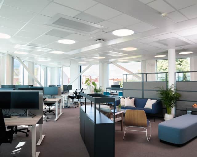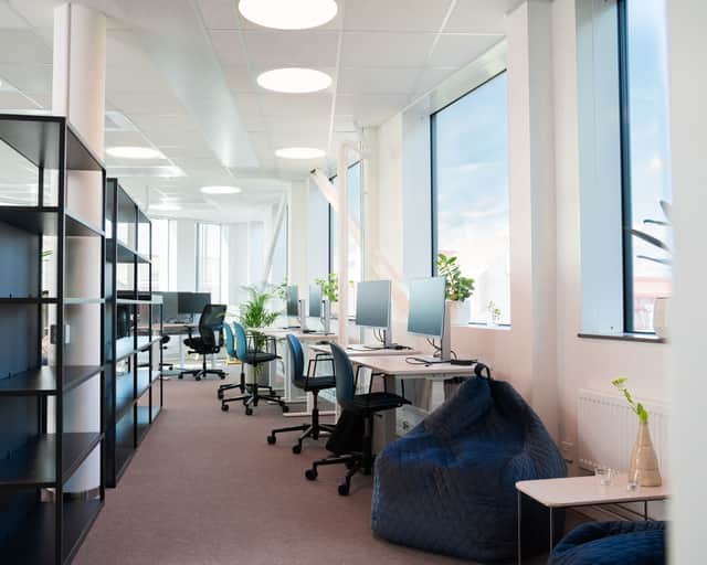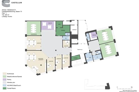 Kontor med öppen planlösning med tillhörande fokusrum, mötesrum och konferensrum. Pentry, pausyta, lounge samt RWC/WC. Bilderna i annonsen är inspirationsbilder tagna i en liknande lokal på våning 4.