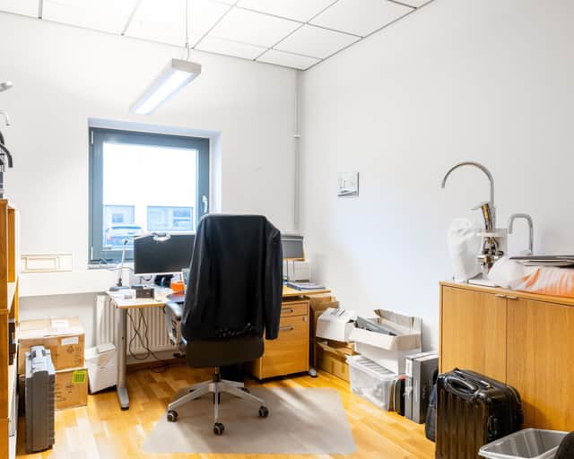 Välkommen till en smart planerad lokal om 173 kvm som kombinerar kontor och lager på ett effektivt sätt. Här finns fyra rymliga kontorsrum med stora möjligheter – behåll rumsindelningen för avskildhet, eller öppna upp ytorna och skapa ett luftigt kontorslandskap med plats för fler medarbetare. Ett generöst konferensrum rymmer 12–14 personer, perfekt för både interna möten och kundpresentationer. Lokalen har även ett trevligt lunchrum med pentry, två toaletter samt ett praktiskt lager med port som nås direkt från kontorsdelen.