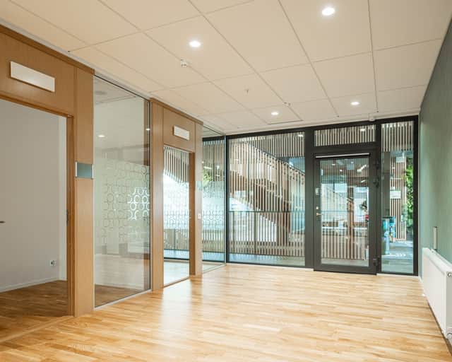 På en strategisk plats på entréplanet väntar en lockande lokal på 458 kvm, komplett med imponerande fönster som låter naturligt ljus strömma in och skapa en härlig atmosfär. Dessutom bjuder huset in till en magisk takterrass där allt från spännande evenemang till avslappnade afterwork-träffar med kollegorna kan äga rum.