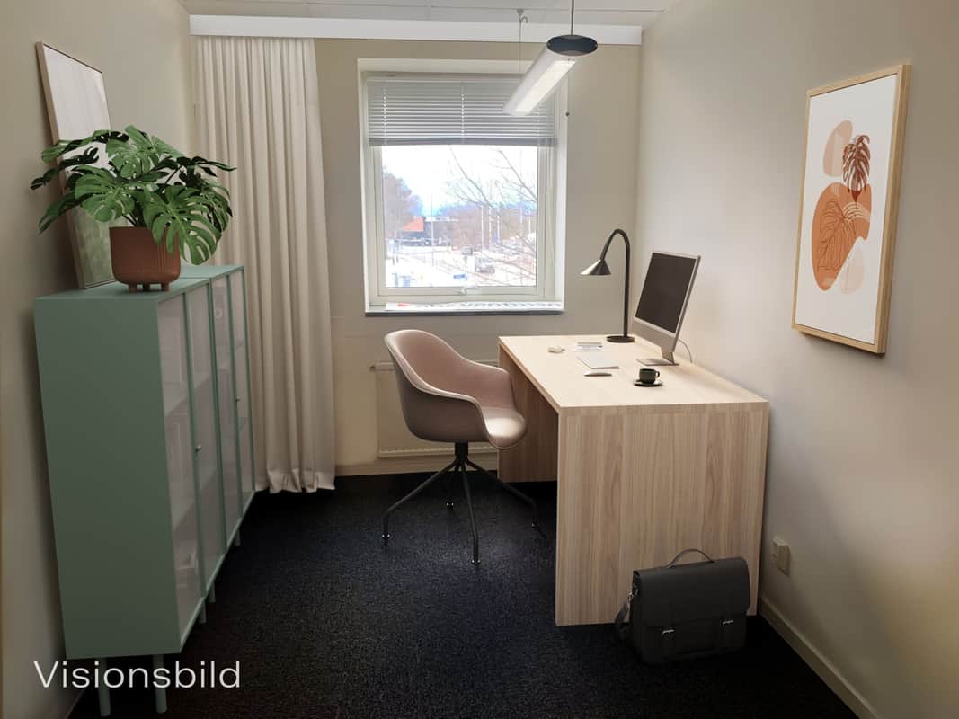 Lokalen är belägen på entréplan och erbjuder en mixad kontorsrumslösning.
