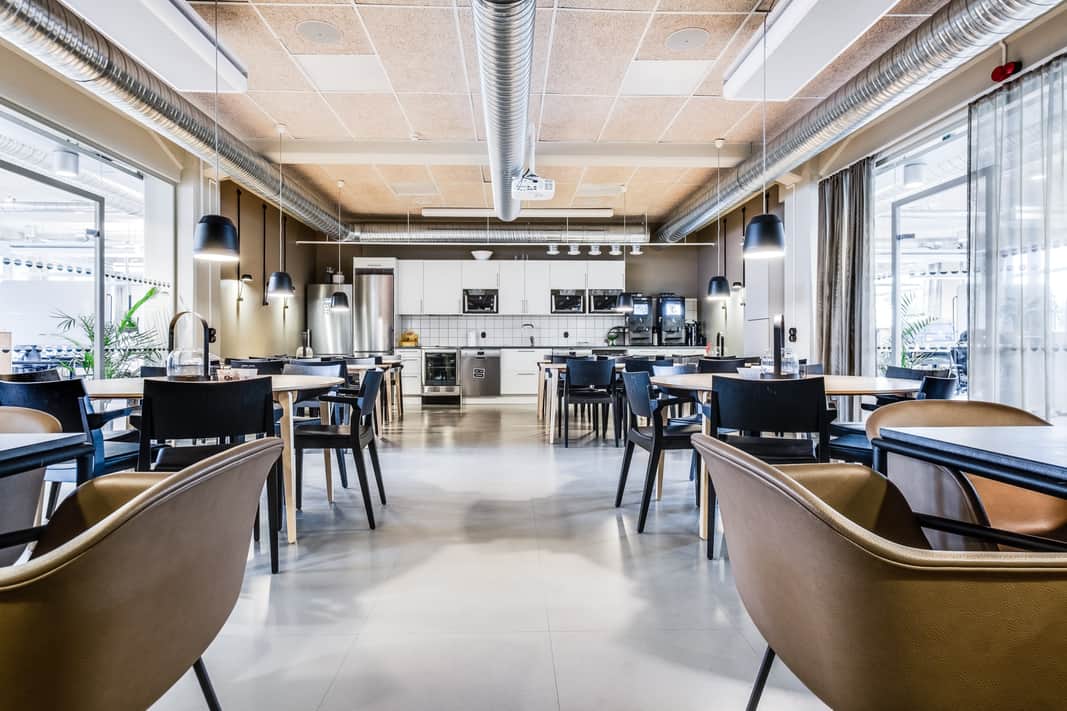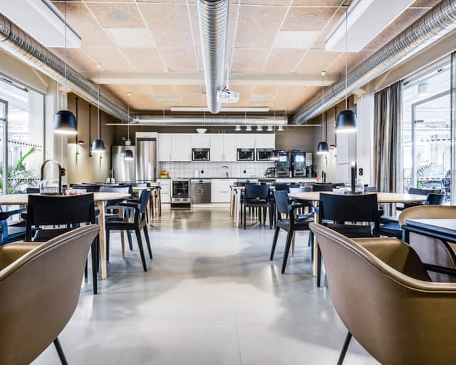 Här arbetar man i en arbetsmiljö med gott om ljusinsläpp från alla fönsterpartier.