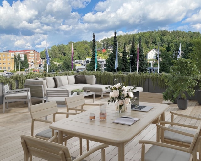 Här arbetar du med sju kontorsrum, pausrum med pentry, konferensrum, stort förråd samt två wc med städ. Dessutom med utgång till den egna terrassen. Den härliga terrassen vetter mot sydost och bjuder på sol under hela arbetsdagen. Ta med dig morgonkaffet eller lunchen ut på terrassen och njut!