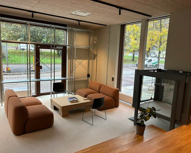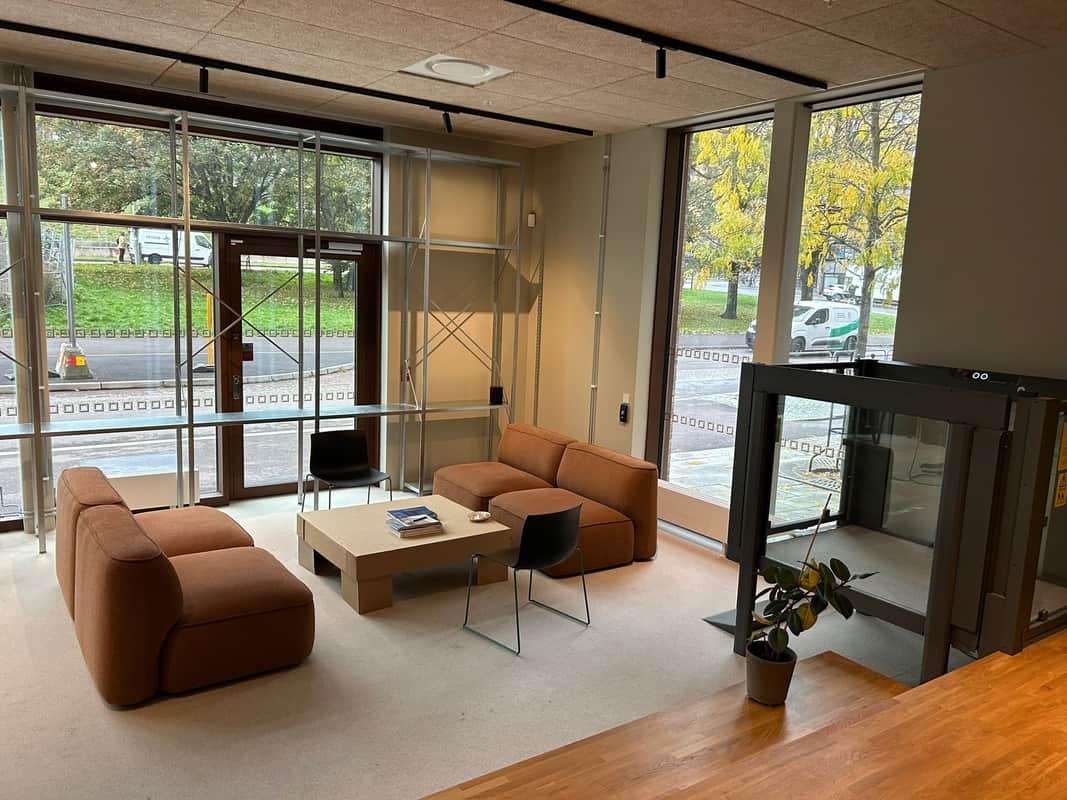 Kontor med karaktär med högt i tak och stora fönster i entréplan