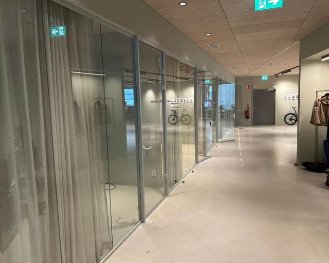 Lokalen har en generös takhöjd och är utrustad med stora fönsterpartier som säkerställer ett exceptionellt naturligt ljusinsläpp under hela dagen. Detta skapar en behaglig och luftig atmosfär som bidrar till ökad trivsel.