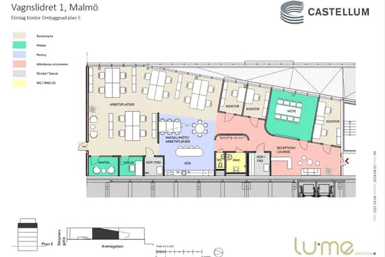 Lokalen hälsar dig välkommen med en ljus och inbjudande entré, där du stiger in i en arbetsmiljö som omfattar mångfaldiga planlösningar. Från öppna samarbetsområden till privata mötesrum och avslappnande utomhusytor – här erbjuds varje arbetsuppgift en dedikerad plats.