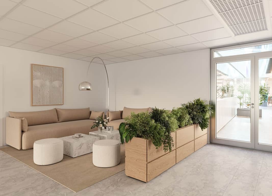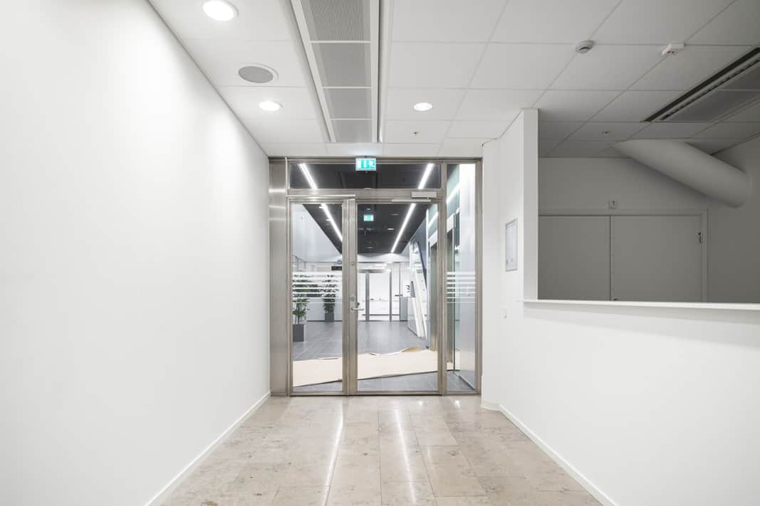 Lokalen hälsar dig välkommen med en ljus och inbjudande entré, där du stiger in i en arbetsmiljö som omfattar mångfaldiga planlösningar. Från öppna samarbetsområden till privata mötesrum och avslappnande utomhusytor – här erbjuds varje arbetsuppgift en dedikerad plats.