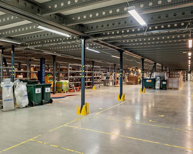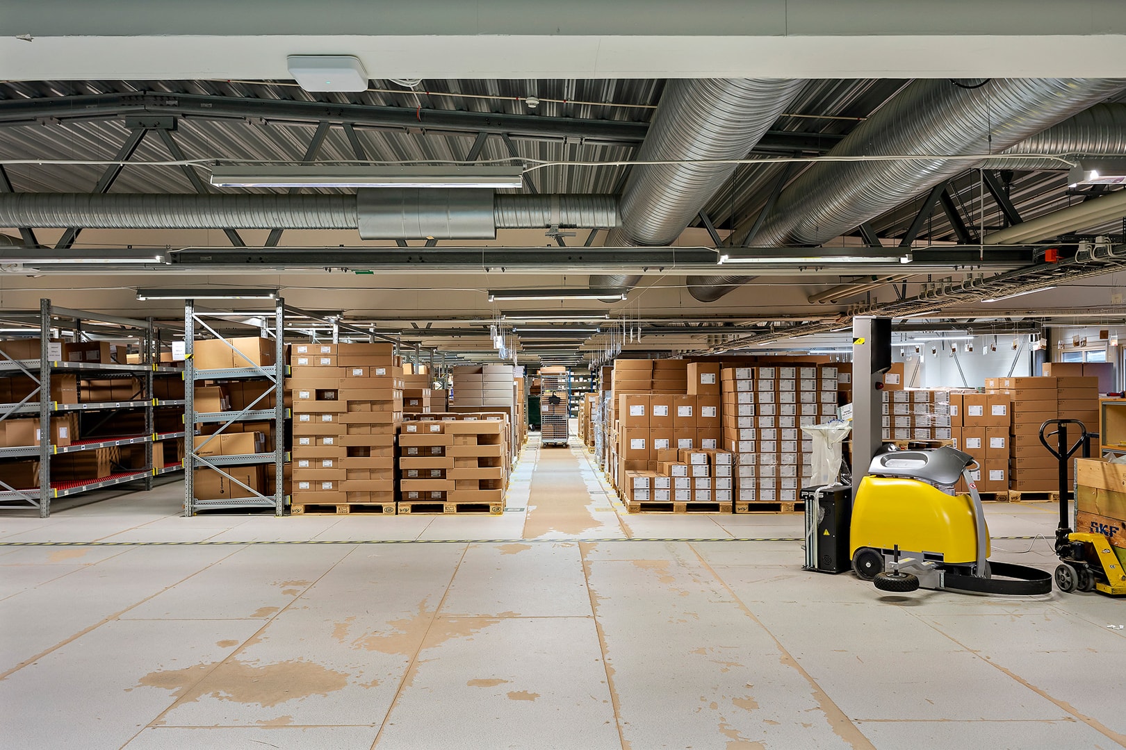 Stor öppen lageryta med 7 meter i takhöjd samt personalutrymmen. Portar i markplan samt lastbrygga.