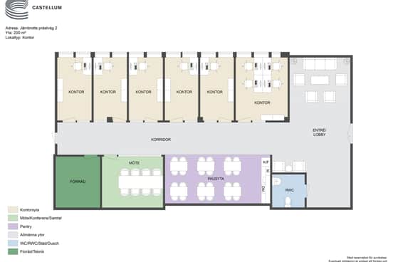 Lokalen erbjuder en genomtänkt planlösning med en mix av kontorsrum i olika storlekar, flera konferensrum och en större öppen yta vid entrén – perfekt för showroom eller reception. Önskar ni mer öppen yta i lokalen ordnar vi detta.