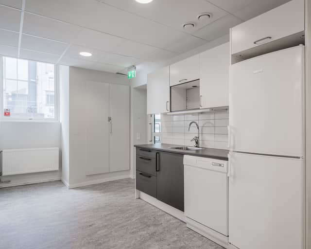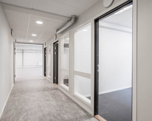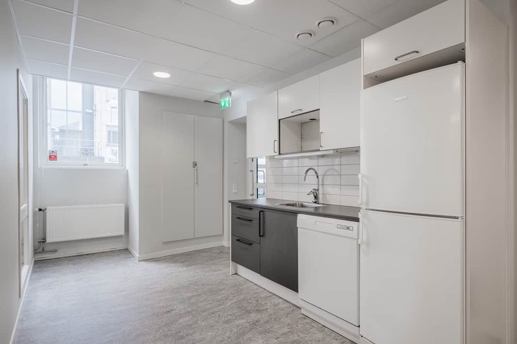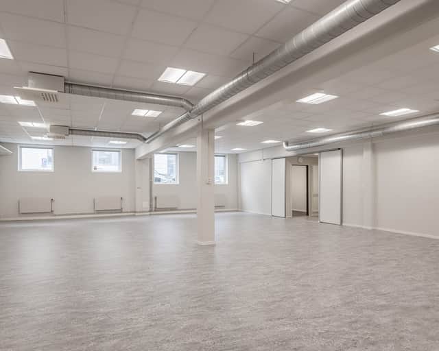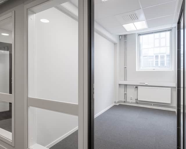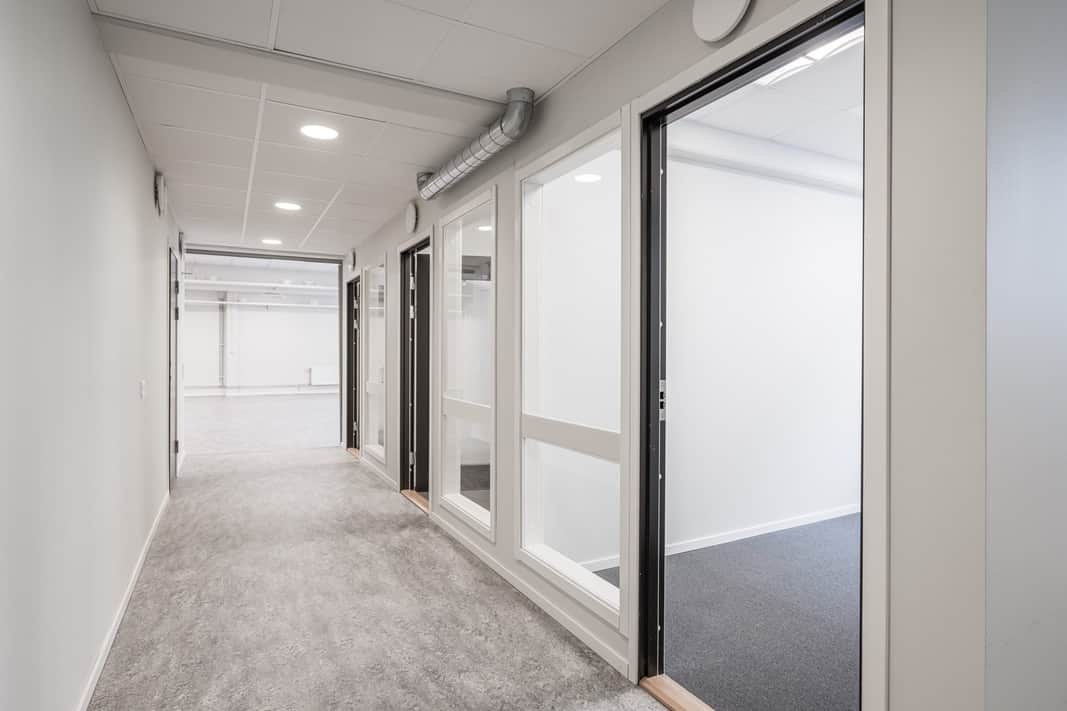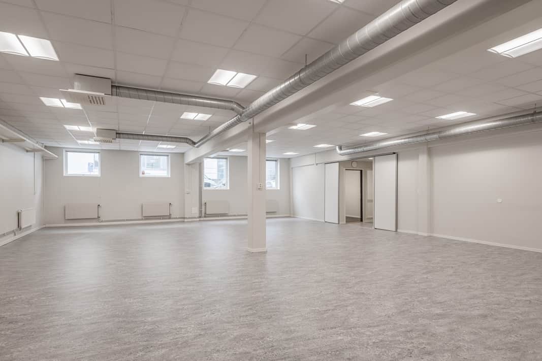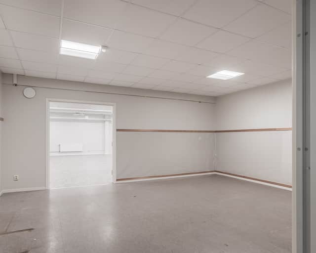 Stora öppna ytor samt tre kontorsrum, förråd och gemensamhetsytor.