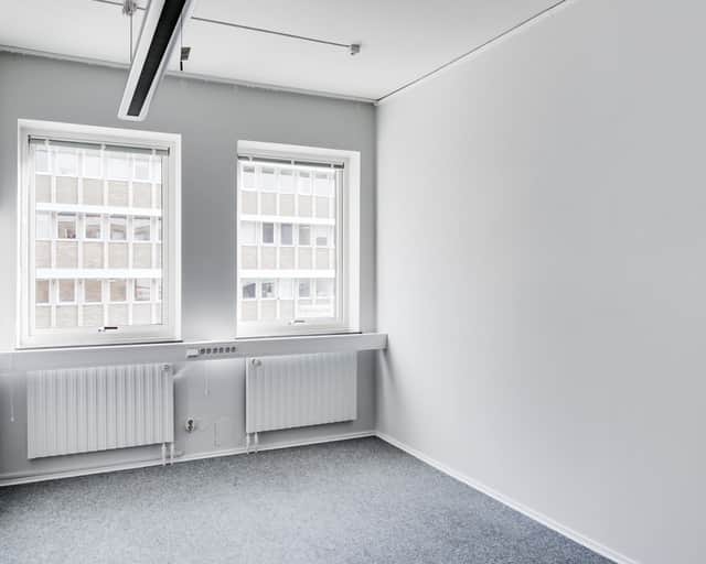 Kontoret har en blandad planlösning i dagsläget, öppen kontorsyta för flertalet personer samt enskilda kontorsrum.