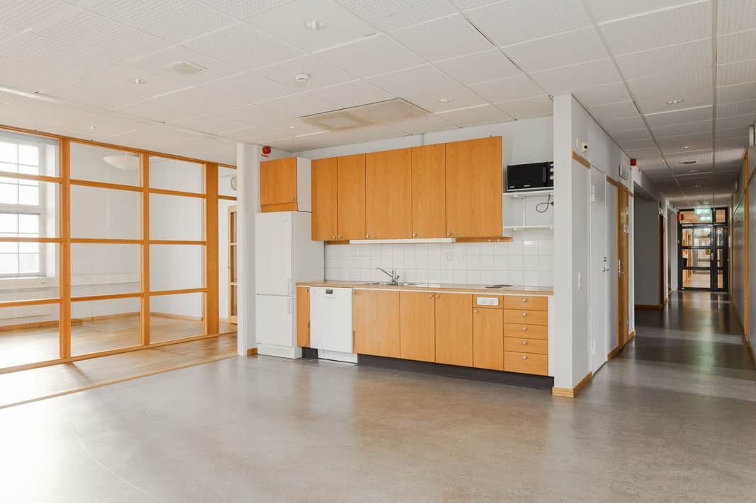 Det inbjudande pentryt är centralt placerat och öppnar upp mot en generös pausyta, perfekt för informella samtal, fikastunder eller en stunds avkoppling. Lokalen är utrustad med wc och dusch, vilket ger extra bekvämlighet för medarbetare som cyklar till jobbet eller tränar på lunchen. Dessutom finns ett separat städrum och ett praktiskt förråd som underlättar den dagliga driften.